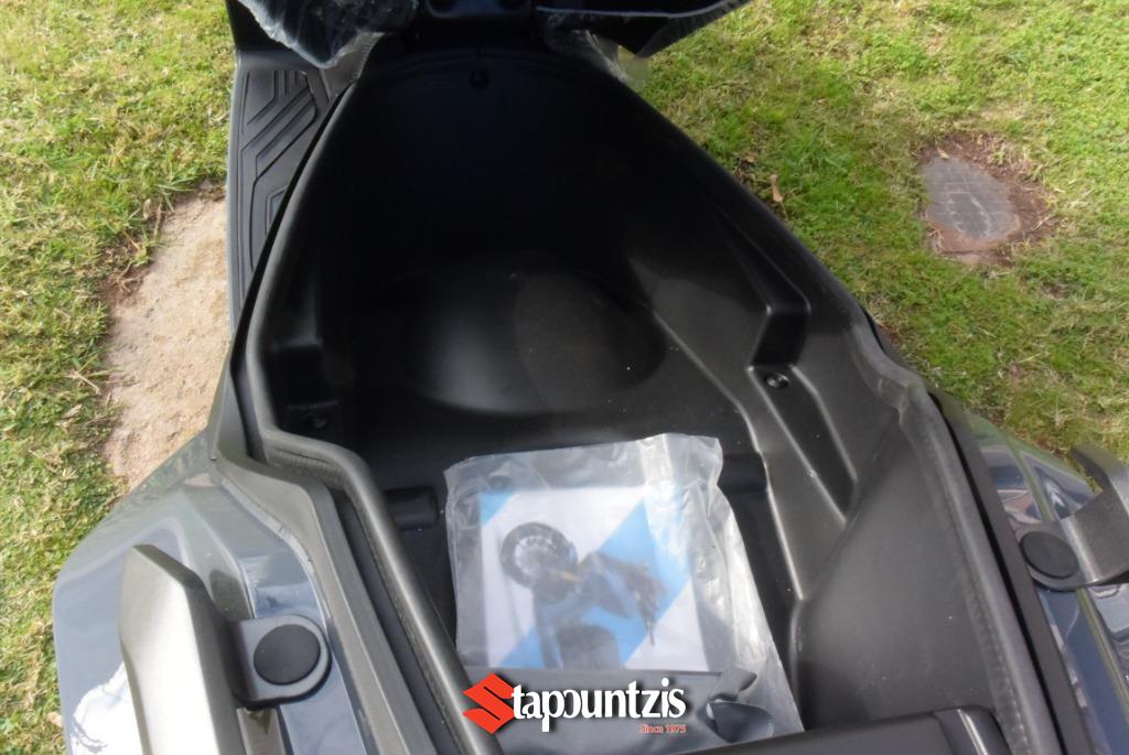 Μεγάλος αποθηκευτικός χώρος κάτω από τη σέλα, ιδανικός για κράνη και προσωπικά αντικείμενα.