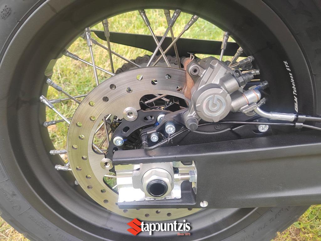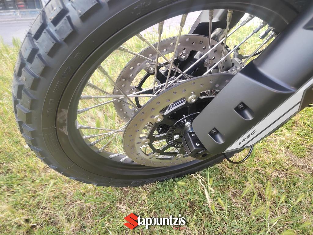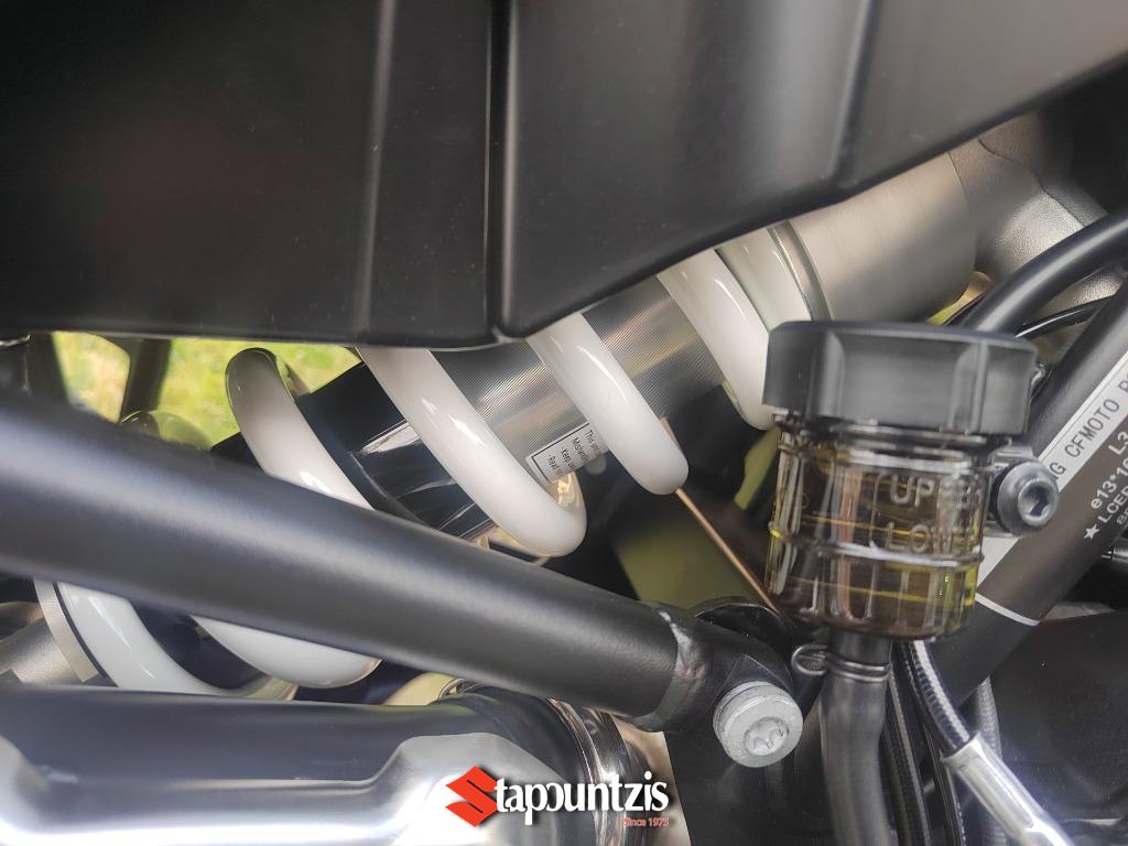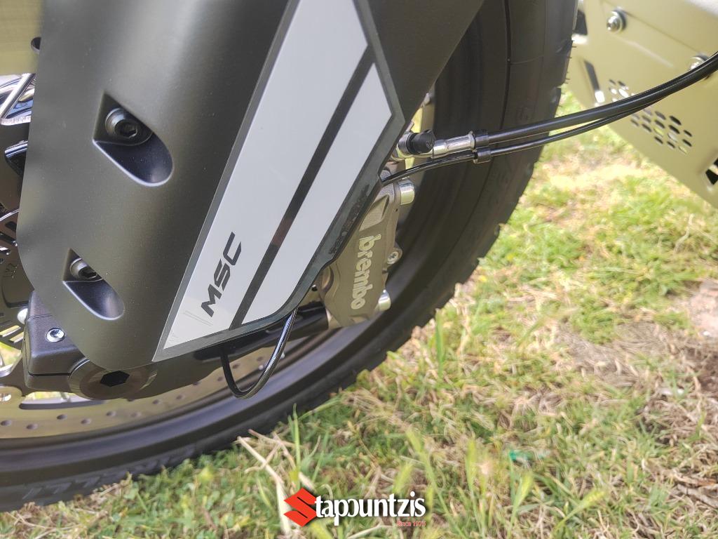 Πλήρως ρυθμιζόμενη ανάρτηση KYB μπροστά και πίσω, σε συνδυασμό με ισχυρές δαγκάνες Brembo και Bosch ABS με cornering λειτουργία , εξασφαλίζουν σιγουριά και σταθερότητα τόσο σε άσφαλτο όσο και σε εκτός δρόμου εδάφη. Τα ελαστικά Pirelli STR προσφέρουν εξαιρετική πρόσφυση σε όλες τις επιφάνειες.