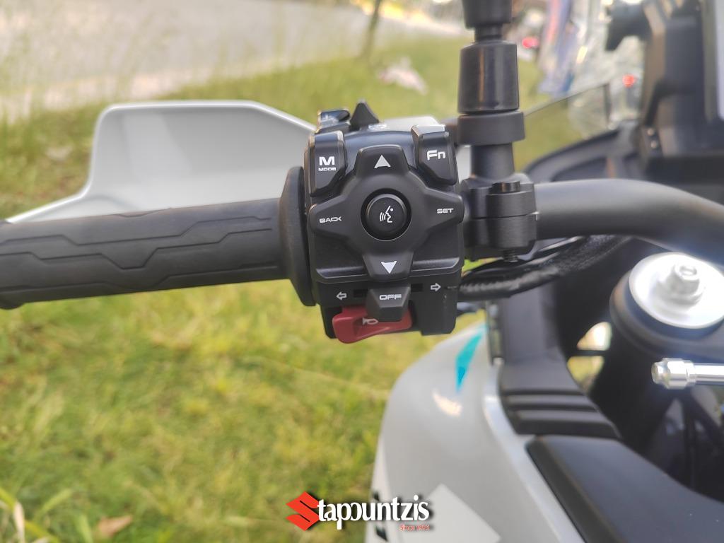 Όλες οι πληροφορίες εμφανίζονται με σαφήνεια στη μεγάλη οθόνη αφής TFT 8 ιντσών , ενώ λειτουργίες όπως η συνδεσιμότητα T-BOX , το σύστημα παρακολούθησης πίεσης ελαστικών TPMS , τα θερμαινόμενα γκριπ και σέλα, ο ρυθμιζόμενος ανεμοθώρακας, οι συνδέσεις USB-A και USB-C και ο πλήρης φωτισμός LED ολοκληρώνουν την άνεση και την ευκολία χρήσης.