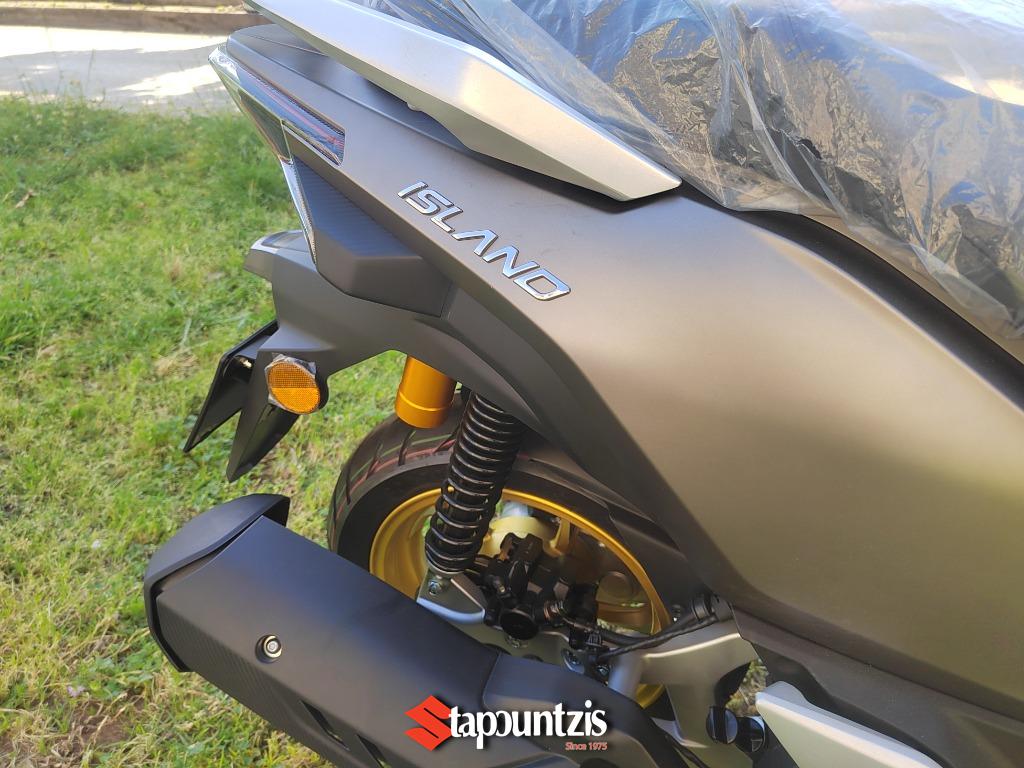 Το Island 200 έρχεται να ταράξει τα νερά. Με επίπεδο πάτωμα, σύστημα start & stop, με θύρες USB και άφθονο χώρο αποθήκευσης. Η πίσω σχάρα είναι στον βασικό εξοπλισμό.