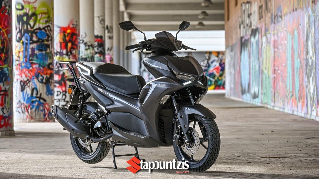 Σπορ σκούτερ με επιθετική εμφάνιση, εργονομική θέση οδήγησης για οδηγό-συνοδηγό και προσοχή στη λεπτομέρεια. Με ενσωματωμένη τη πίσω σχάρα, σας.