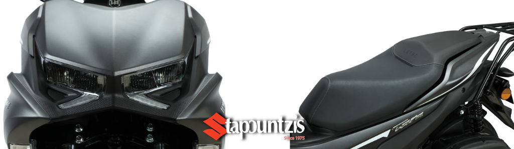 Σπορ σκούτερ με επιθετική εμφάνιση, εργονομική θέση οδήγησης για οδηγό-συνοδηγό και προσοχή στη λεπτομέρεια. Με ενσωματωμένη τη πίσω σχάρα, Διαθέτει χώρο αποθήκευσης κάτω από τη σέλα για πιο μεγάλες μεταφορές, αλλά και πρακτικό γάντζο μεταφοράς αποσκευών, ντουλαπάκι που κλειδώνει και ανοιχτό και άμεσο ντουλαπάκι για το κινητό ή το αναψυκτικό σας. Διαθέτει δίσκο μπρος πίσω και σε συνδυασμό με το σύστημα συνδυασμένης πέδησης, σας δίνει τη δυνατότητα για σωστό και αποδοτικό φρενάρισμα σε όλες τις συνθήκες. Ηλεκτρονικό ευανάγνωστο καντράν με όλες τις πληροφορίες που χρειάζεστε για την οδήγησή σας. Ορατό στη διάρκεια της ημέρας, κομψό σε design, θα σας κρατά πάντα ενήμερους. Γεμάτο επιθετικές γωνίες και γραμμές σαν κύματα, το Tara θα σας εντυπωσιάσει. Με σέλα 2 θέσεων που συμβαδίζει με τις γραμμές του πλαισίου, δημιουργώντας πανέμορφες γραμμές.
