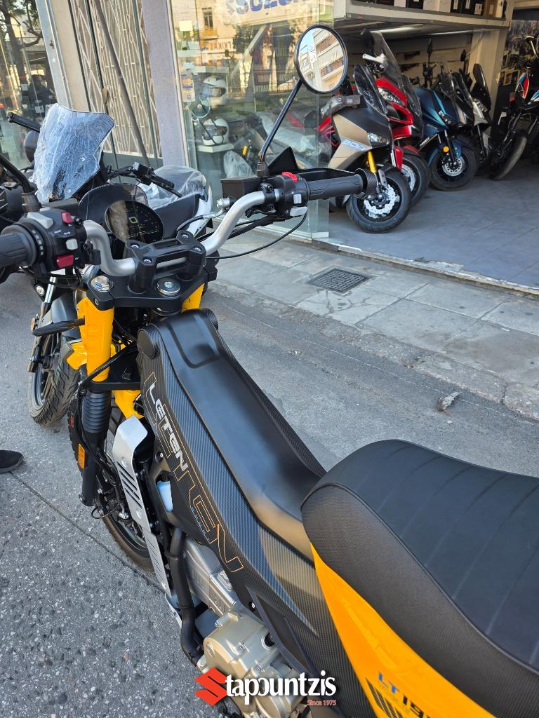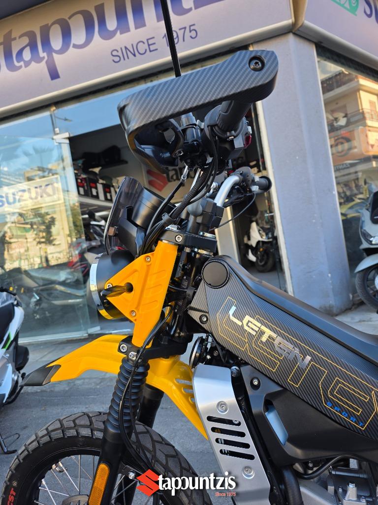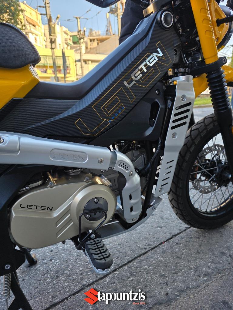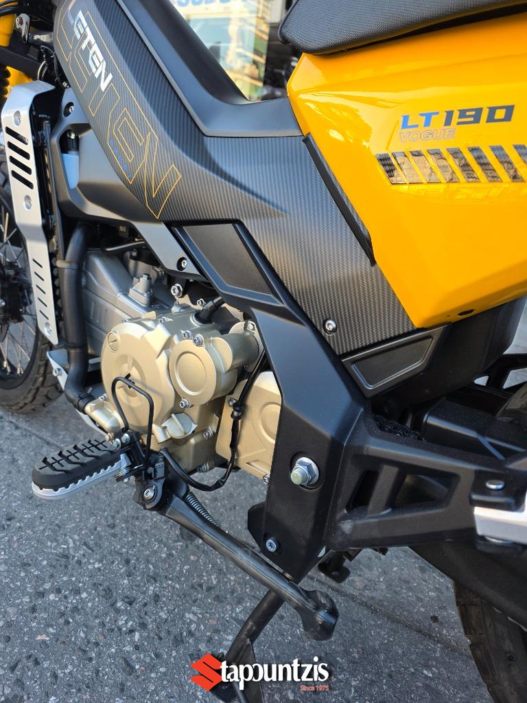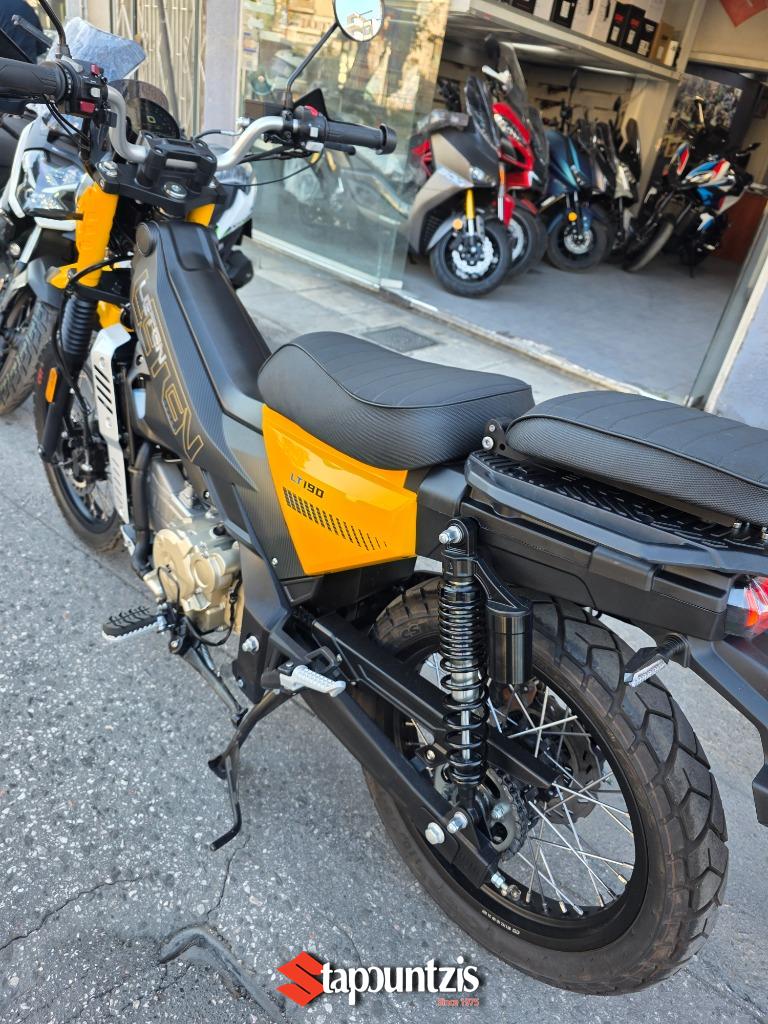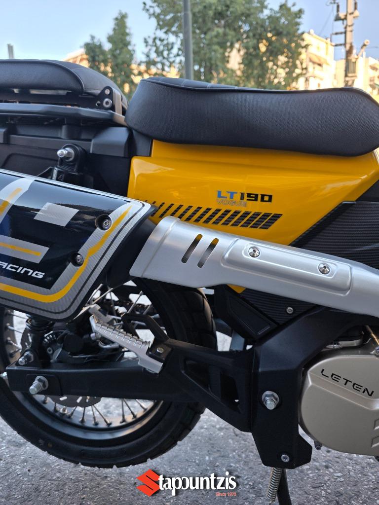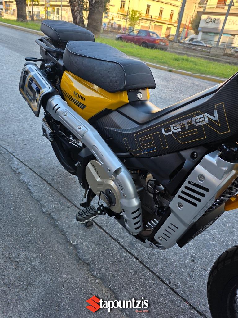 Το υπερπαπί LT-190 LETEN έρχεται στα τέλη Μαίου για να διαλύσει τον ανταγωνισμό, ο πανίσχυρος κινητήρας των 188 κυβικών εκατοστών αποδίδει 21 ολοζώντανους ίππους με μπόλικη ροπή από χαμηλά όπου σε συνδυασμό με το CVT κιβώτιο με αλυσίδα δεν θα κολλήσει πουθενά, ισιώνοντας τη κάθε διαδρομή που θα του υποδείξεις, το χαμηλό βάρος του(128 κιλά) αποτελεί τον καλύτερο σύμμαχο τόσο για την οικονομία καυσίμου καθώς η εργοστασιακή του κατανάλωση δεν ξεπερνάει τα 2,4 λίτρα τα 100 όπου σε συνδυασμό με το ρεζερβουάρ χωρητικότητας 14.5 λίτρων υπόσχεται εξωπραγματική αυτονομία. Οι 17αρες ζάντες με ελαστικά 90/90 και 110/80 υπόσχονται την άνετη προσπέλαση από κάθε είδους λακούβας η ανωμαλίας οδοστρώματος τόσο σε ασφάλτινο αλλά και χωμάτινο. Οι αναρτήσεις αποτελούνται από συμβατικό τηλεσκοπικό πιρούνι και δύο πίσω αμορτισέρ με ξεχωριστά δοχεία και ρύθμιση προφόρτισης, ενώ στα φρένα συναντάμε δίσκους εμπρός και πίσω, με διπίστονη δαγκάνα μπροστά και δικάναλο ABS ενώ υπάρχει και traction control το οποίο μπορεί να ρυθμιστεί και κατά την ευαισθησία του. Ο εξοπλισμός κινείται σε υψηλό επίπεδο για τα δεδομένα της κατηγορίας με έγχρωμη TFT οθόνη με συνδεσιμότητα Bluetooth, αισθητήρες πίεσης ελαστικών, keyless σύστημα, πλήρης φωτισμός LED, χούφτες, ποδιά κινητήρα , μπαταρία λιθίου χαμηλού βάρους, και θερμαινόμενα γκριπς. Το LΤ μας συστήνεται με τρείς διαφορετικούς χαρακτήρες, αυτόν του πιστού εργάτη που θα σε ακολουθήσει παντού και δεν θα πει πουθενά όχι, του έμπιστου συμμάχου που κάθε μέρα θα σε μετακινεί τόσο εντός πόλης αλλά και σε δύσβατα μονοπάτια και τέλος αυτού του καλύτερου φίλου που μαζί του θα περνάς όμορφα κάνοντας την οδήγηση διασκέδαση σε χωμάτινες διαδρομές αφού μπορεί να χρησιμοποιηθεί και σαν εντουράκι!!!! Η τιμή του αν και δεν έχει ανακοινωθεί επίσημα αναμένεται να είναι κοντά στα 2800 ευρώ, τιμή τρομερά ελκυστική και προσιτή για όλους!!!! Τα χρώματα που θα διατίθεται είναι το κίτρινο, το λευκό, το γκρί ματ και το χακί Οι προπαραγγελίες έχουν ήδη ξεκινήσει, οπότε βιάσου γιατί τα κομμάτια που θα πρωτοέρθουν δεν θα είναι πολλά όμως η ζήτηση είναι πολύ μεγάλη!!!